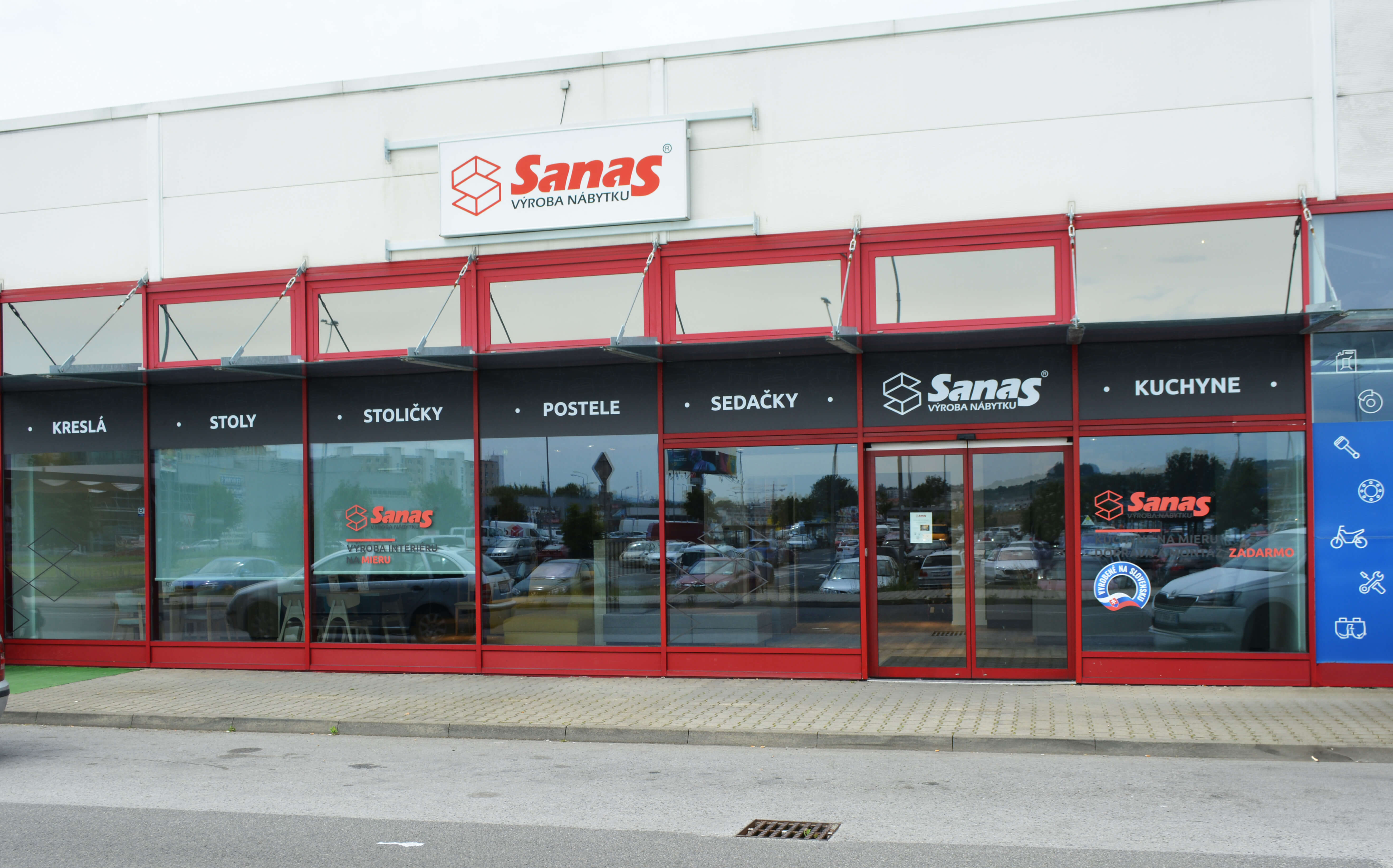 Predajňa Nábytok Sanas Zvolen je našou najnovšou predajňou. Vzorková maloobchodná predajňa ponúka kompletný sériový výrobný sortiment za vynikajúce ceny. Zastúpený je hlavne kompletný sortiment bytového nábytku postele, sedacie súpravy, ale aj jedálenske stoly, stoličky, kuchynské linky, kancelársky nábytok, bytové doplnky. V každom ročnom období vám ponúkame jedinečné zľavy na vybraný sortiment. Radi Vás preto privítame. Parkovanie pre zákazníkov je dostupné pred predajňou bezplatne.
